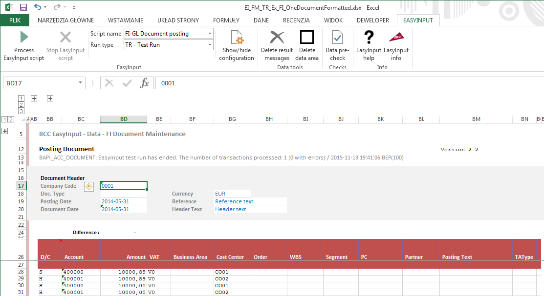In many cases, the user does not have to prepare an SNP EasyInput script himself. The user can use one of dozens of predefined scripts provided with the tool. Posting of accounting documents, including those with more than 999 items, creation and modification of material master data and loading of statistical key figures in CO module are examples of ready-made tools that can be used immediately after the installation of SNP EasyInput on the user’s computer.