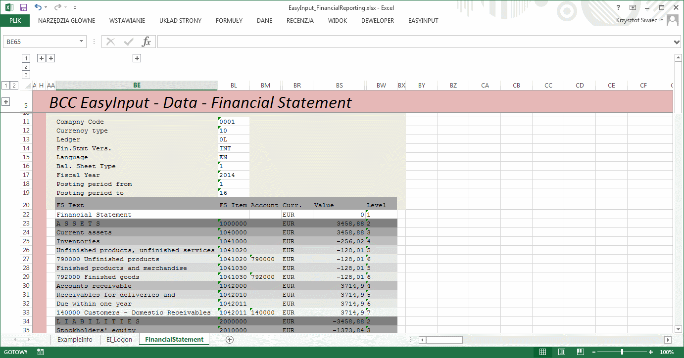 An example of reporting in MS Excel using data downloading via SNP EasyInput