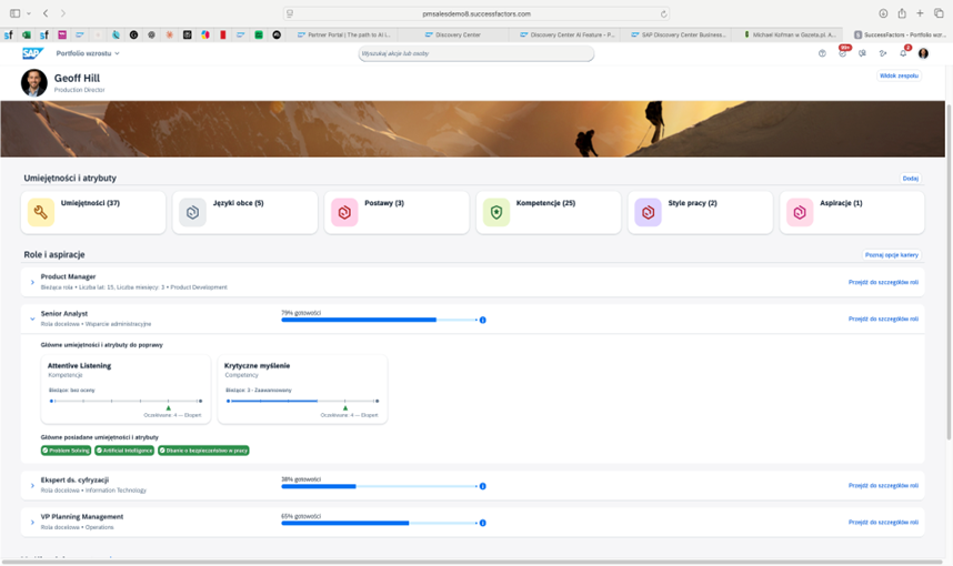 SuccessFactors pomaga rozbroić ten paradoks. Po pierwsze, zaprasza pracowników do rozmowy o przyszłości. Portfolio wzrostu pozwala pracownikom mówić o aspiracjach, zanim pojawi się wakat i presja decyzji. Pracownik nie dostaje obietnicy awansu, ale ma głos i możliwość przygotowania się do przyszłej pożądanej roli.